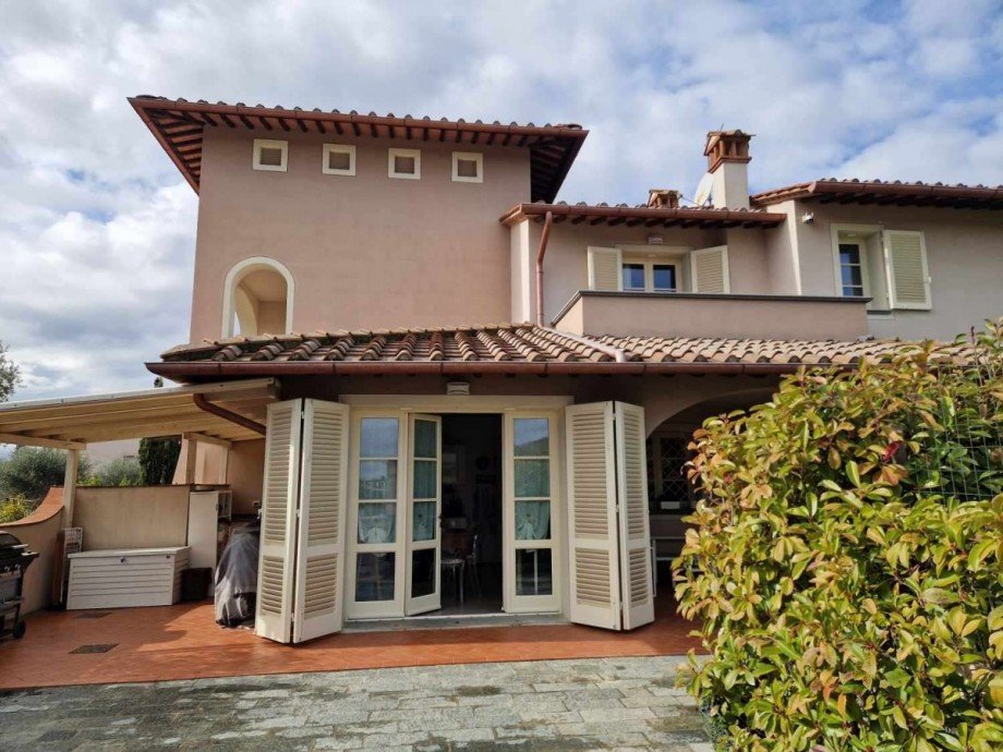 Der Außenbereich überzeugt mit einer stilvollen Außenküche, mehreren Terrassen sowie einem gepflegten Garten mit Gartenhäuschen (ca. 9 m²). Besonders hervorzuheben ist der atemberaubende Panoramablick über die toskanische Landschaft bis nach Pisa - bei klarer Sicht ist sogar der Schiefe Turm erkennbar. Ebenso reicht der Blick über die Versiliaküste bis zu den Apuanischen Alpen. Sonnenuntergänge von der Terrasse oder den Schlafzimmerbalkonen zählen zu den besonderen Highlights dieser Immobilie.